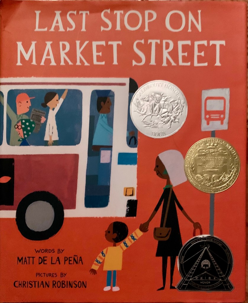 This last book has been a mega favorite in the household generally. Like with Please Baby Please, all our kids have universally liked it. It’s a gorgeously illustrated story of a grandma and grandson’s trip to work at a soup kitchen. You can see this one is a bit well loved at this point.