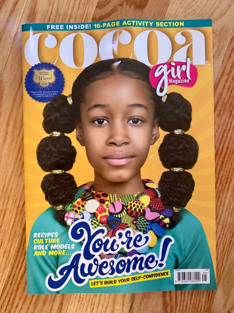 That said, I have found a magazine that Kiddo absolutely loves. It costs me a small fortune to get it delivered from the UK but it’s worth it. It’s written by Black girls for Black girls. It talks about hair and race and self esteem and all sorts of important things. Some of it is still over Kiddo’s head at age 9, so I’ll hold onto old issues for her to be able to read them again in another year or so. It’s a wonderful mag.