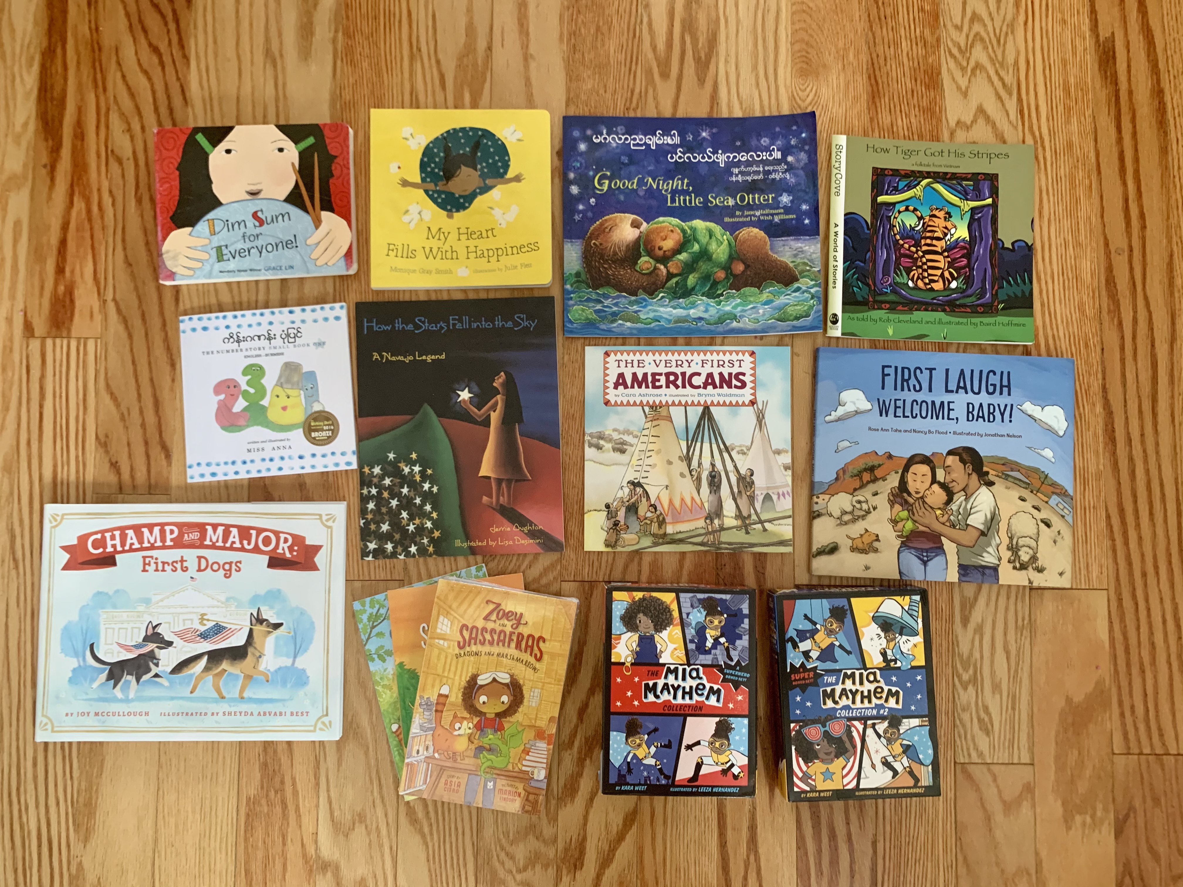 Earlier this week of course I posted about our kids’ books collection. You know what we got in the mail yesterday? TWENTY SIX NEW BOOKS! We got books with Asian characters, and Native American stories, and chapter book sets featuring Black girls (including a Black super hero that Kiddo is already totally into!). We got a book about the White House dogs, and bilingual books that are in Burmese and English. I could not believe it as I opened up the mail, package after package after package! Kiddo is soooo excited about new books.