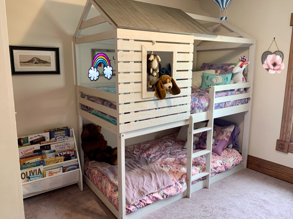 The teenager room still has construction materials in it for our bathroom project, and a Winnie the Pooh quote on the wall, so there are no photos of it put together yet. I’ll post photos when it’s done.
