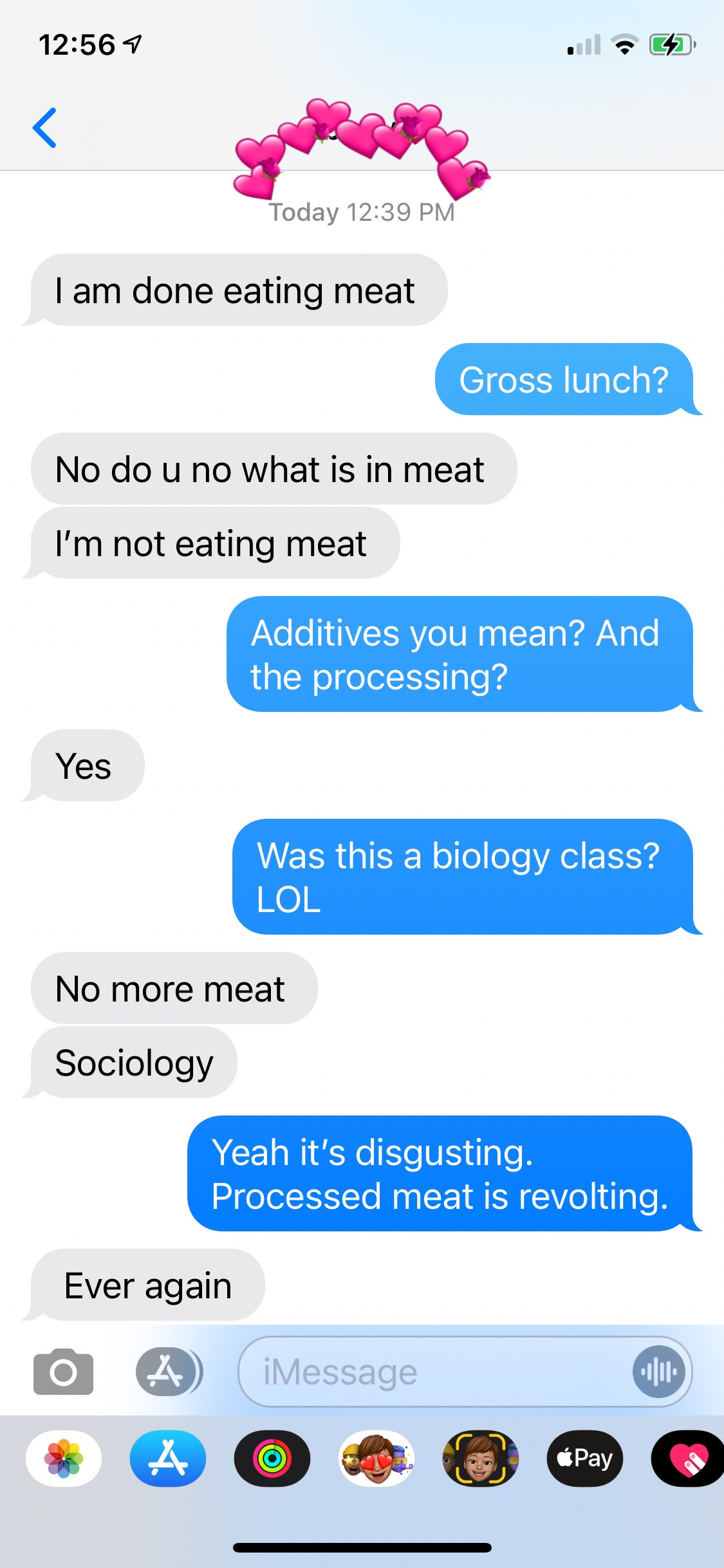 Apparently they showed a film in her sociology class about meat processing and it didn’t sit too well with our Miss Kicks.