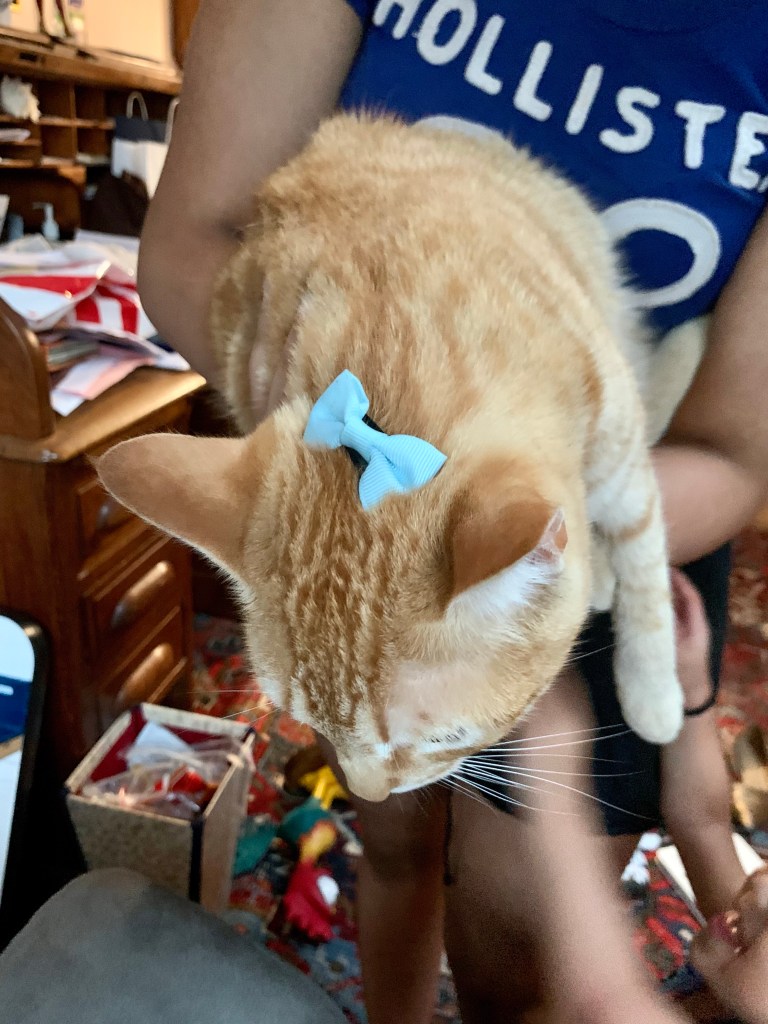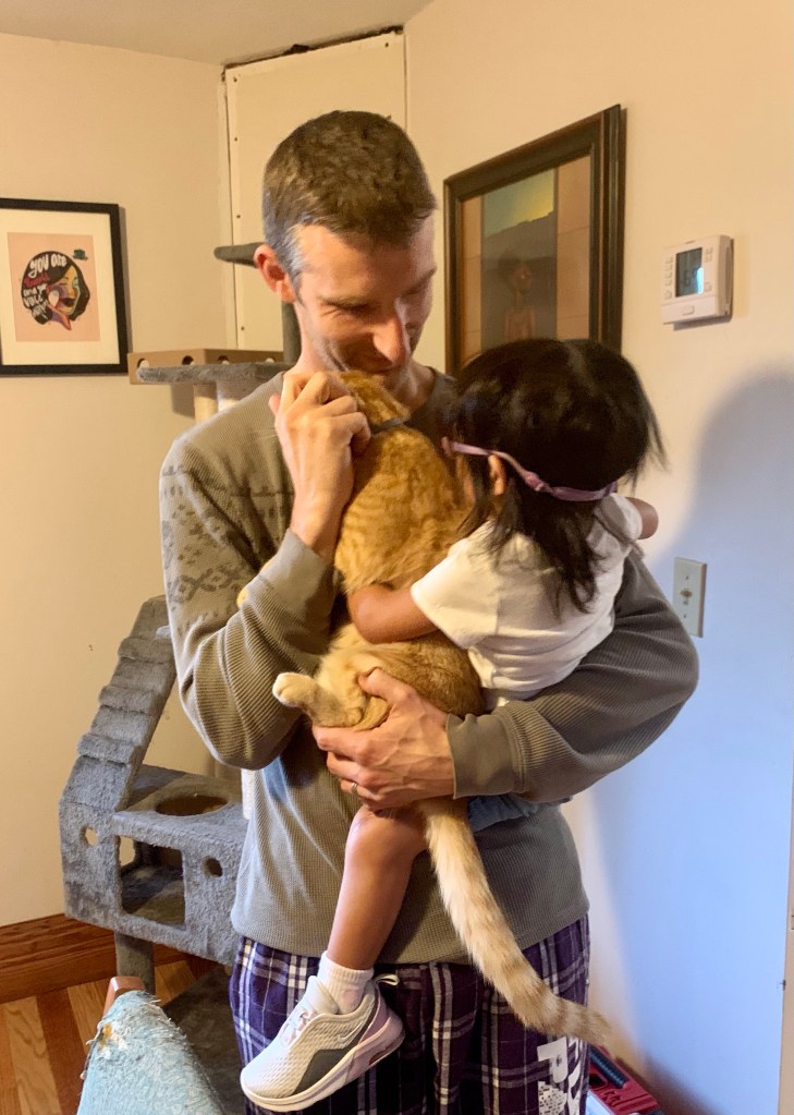 And now there’s Romeo. He just moved in a couple of weeks ago (waltzed in the door like he owned the place) but he’s quickly gotten attached to the kids and has inserted himself into our bedtime routines. It’s so cute it hurts.