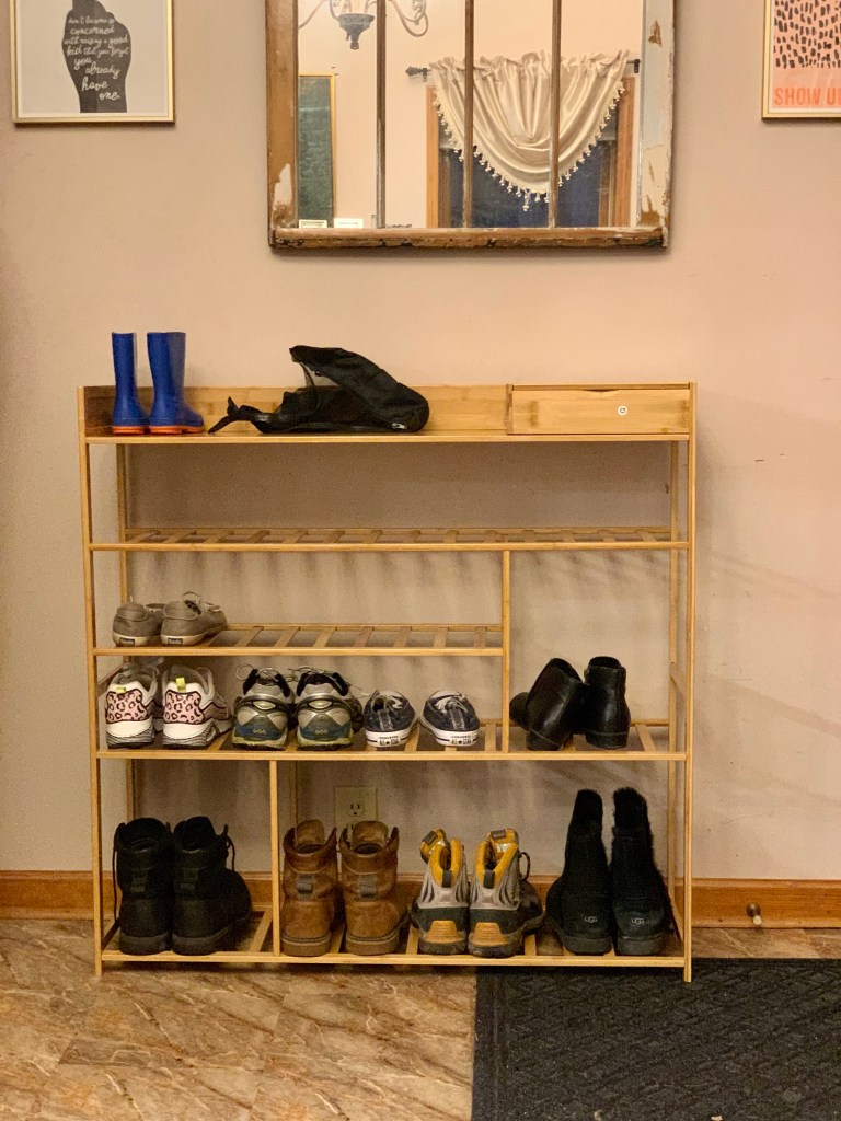 It was the ever growing ever changing mound of shoes that had developed a life of its own inside my back door. With two messy adults and a slew of foster kids who come and go, the pile had existed by the back door and grown steadily for the last 6 years. The back door is the primary entrance to the house, so every guest and every case worker who came in was greeted by its sordid dimensions and sometimes, when Kiddo is here, a faint funk wafting off it.