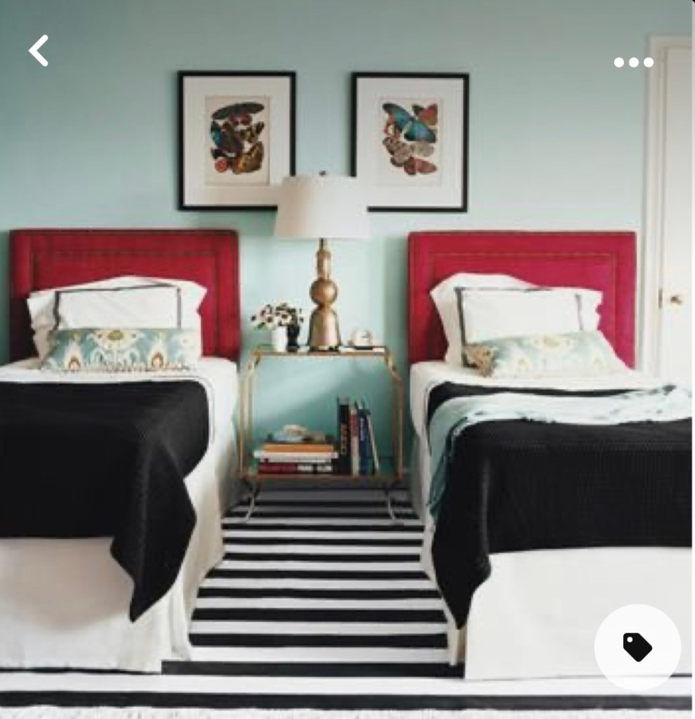 This morning I told Kiddo she’s getting her old room back. we talked about colors and she settled on a lovely mature color scheme of turquoise and red and white and black.