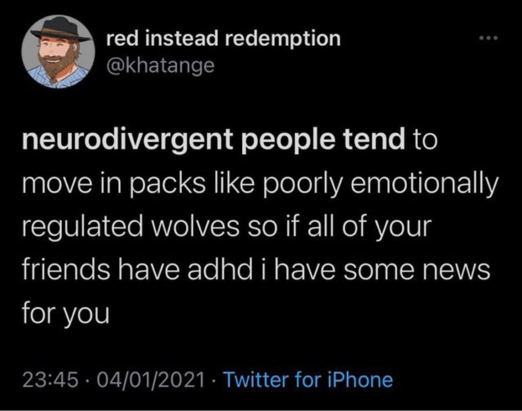 To the extent I was friends with other kids during that time, they were the quirky kids, or other outcasts. Some of those friendships were genuine and I treasure two of them to this day. But honestly? Most of those kids were probably neurodivergent too, whether they know it or not yet.