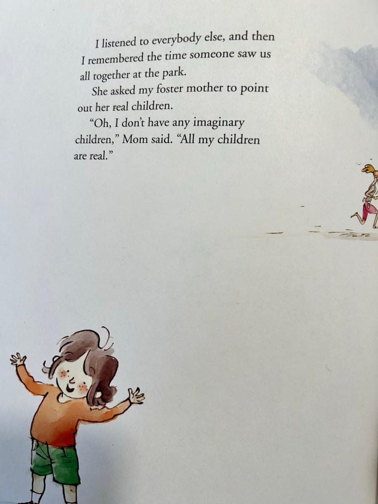 It was suggested to me by my friend Brooke, who edits vast lists of books for work. She stumbled on this one and recommended it because the main character happens to be a foster kid. The story is about a foster child whose class is doing an “about my family” project, and they’re nervous because their family is not typical.